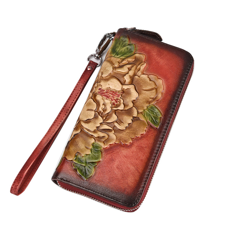Design: Womens Peony Flower Leather Wristlet Wallet Zip Around Wallets Floral Ladies Zipper Clutch Wallet for Women