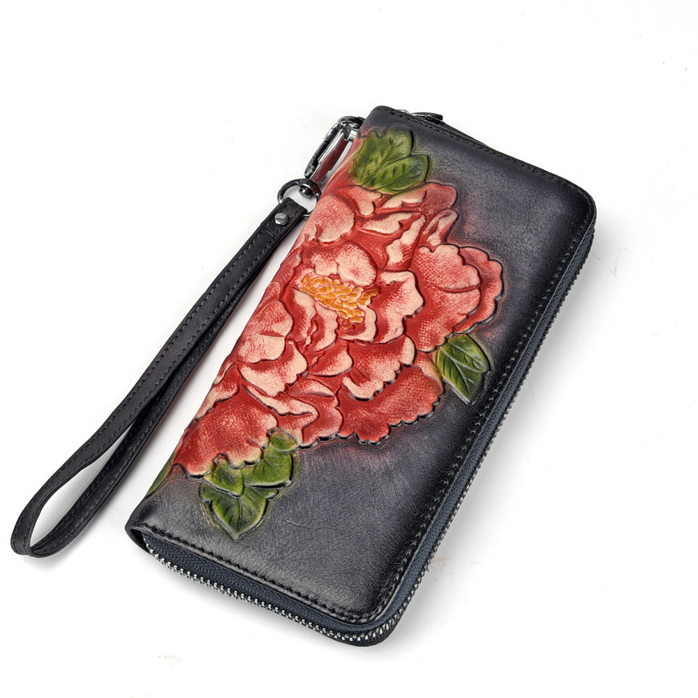 Style: Womens Peony Flower Leather Wristlet Wallet Zip Around Wallets Floral Ladies Zipper Clutch Wallet for Women