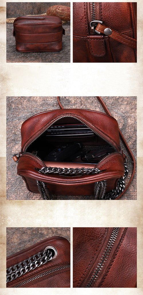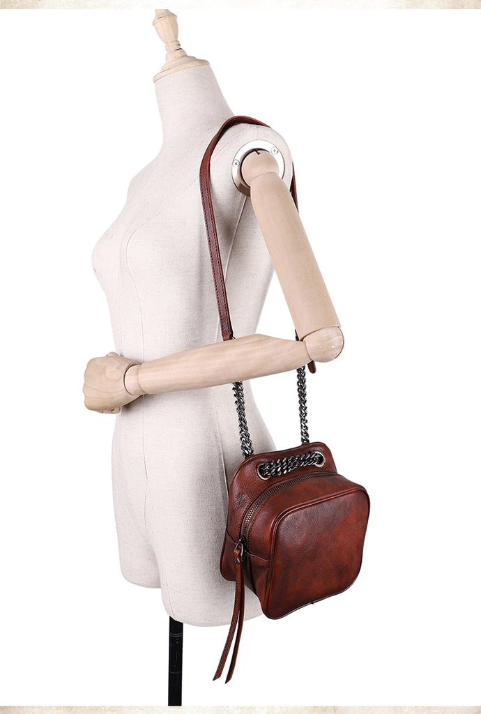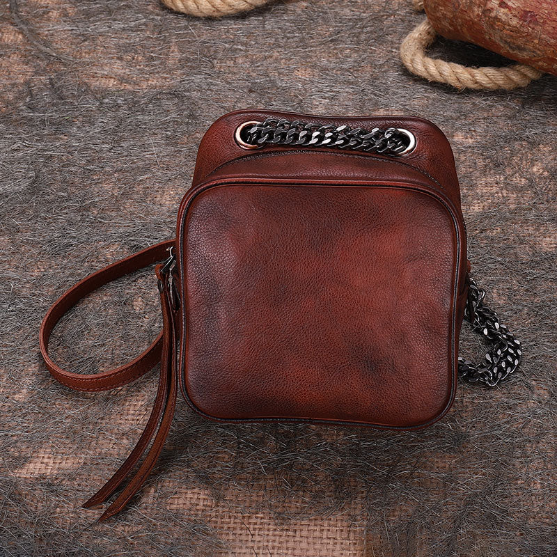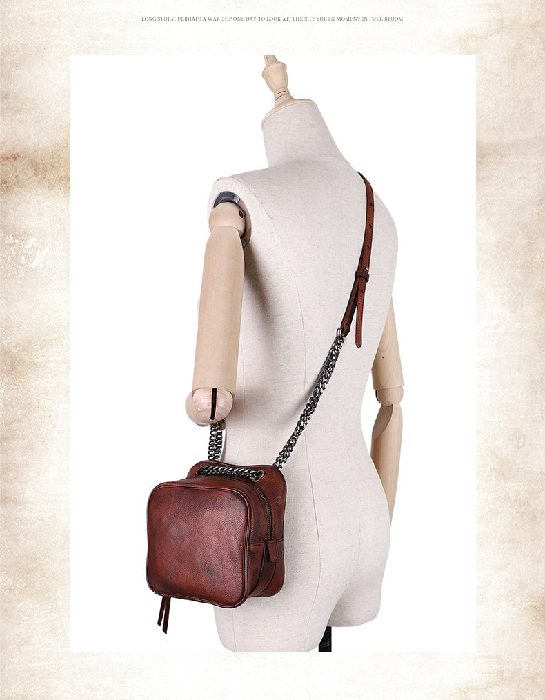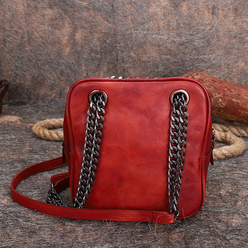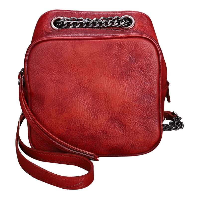 Design: Womens Red Leather Cube Small Side Bag Mini Shoulder Bag Best Square Crossbody Purse for Ladies