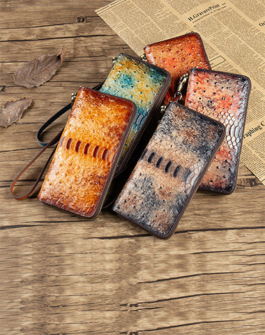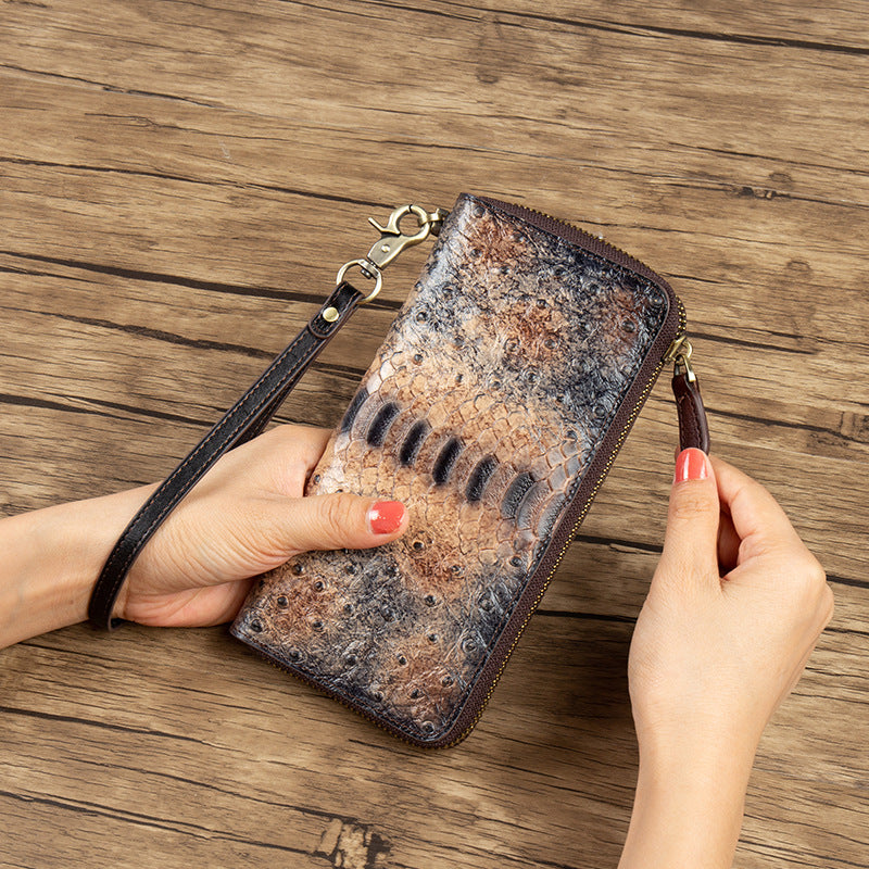 Design: Womens Leather Zip Around Wallets Ostrich Pattern Wristlet Wallets Ladies Zipper Clutch Wallet for Women
