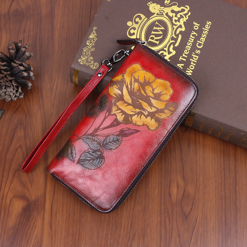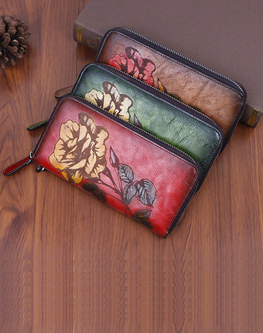 Womens Rose Flower Leather Wristlet Wallets Zip Around Wallet Flower Ladies Zipper Clutch Wallet for Women