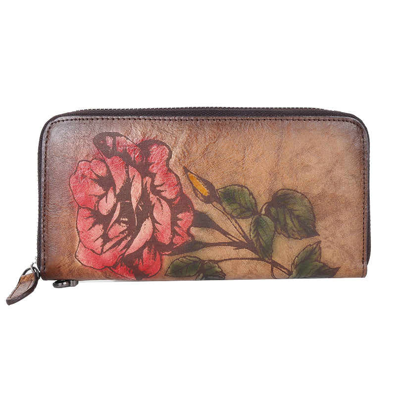Design: Womens Rose Flower Leather Wristlet Wallets Zip Around Wallet Flower Ladies Zipper Clutch Wallet for Women