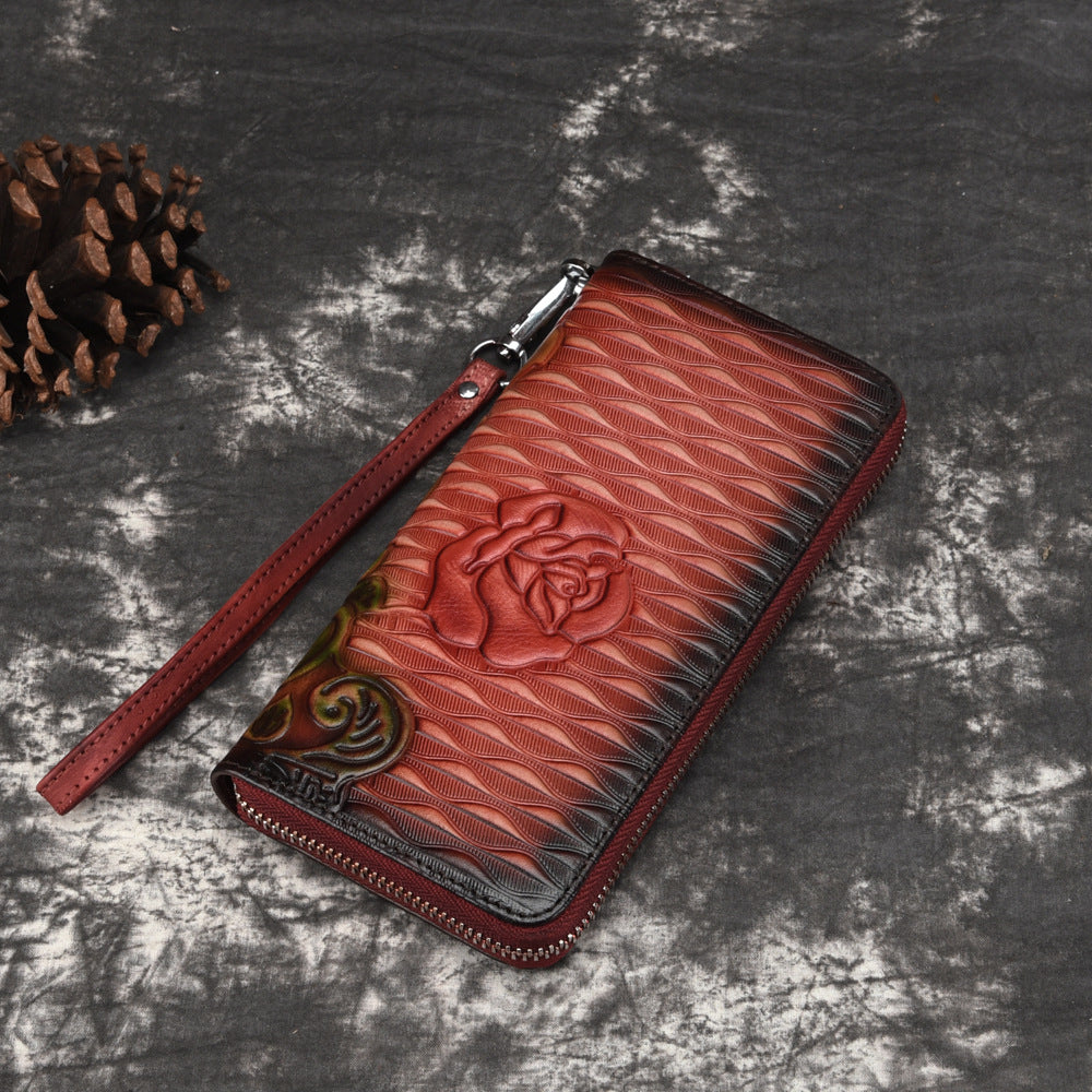 Design: Womens Rose Flower Leather Zip Around Wallet Wristlet Wallet Flower Ladies Zipper Clutch Wallet for Women