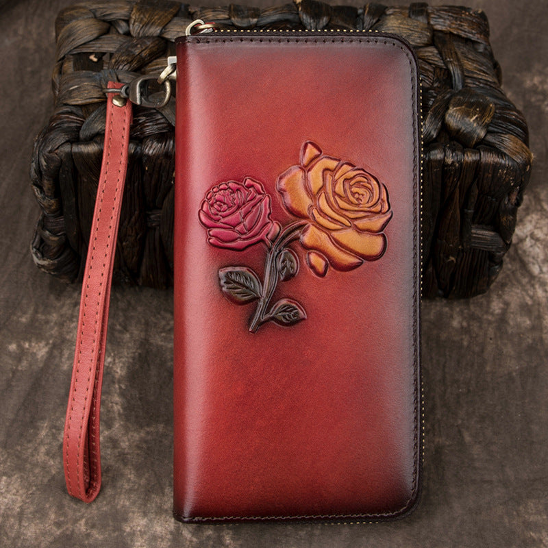 Style: Womens Rose Flower Leather Wristlet Wallets Zip Around Wallet Flower Ladies Zipper Clutch Wallet for Women