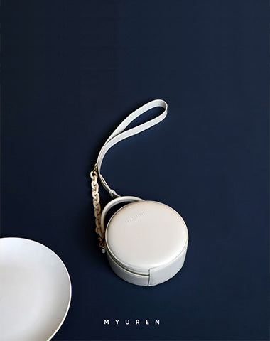Style: Womens White Leather Round Handbag Small Chain Crossbody Purse Round Shoulder Bag for Women