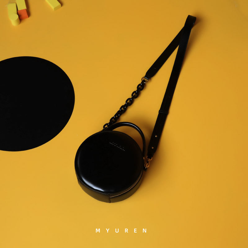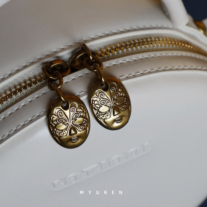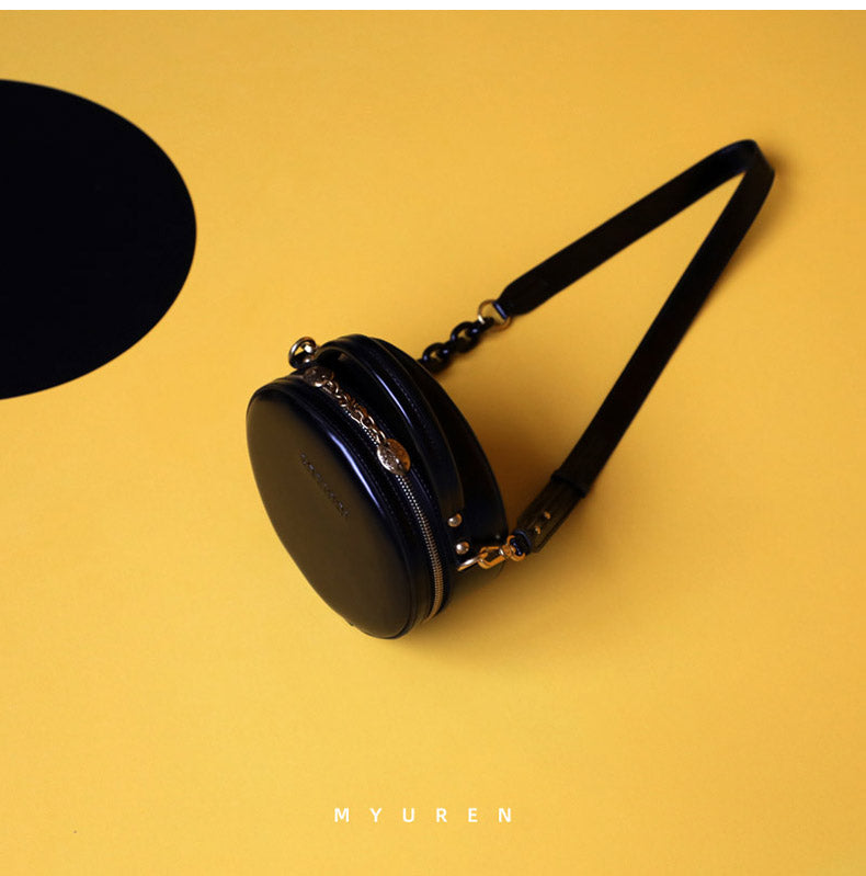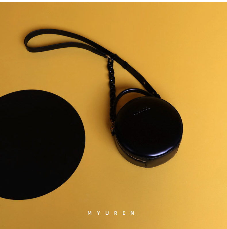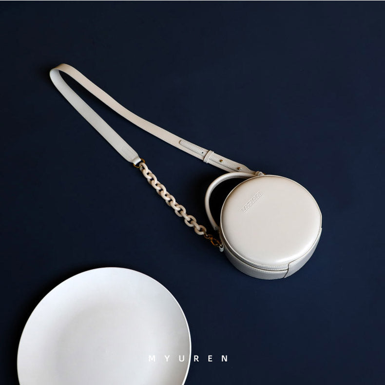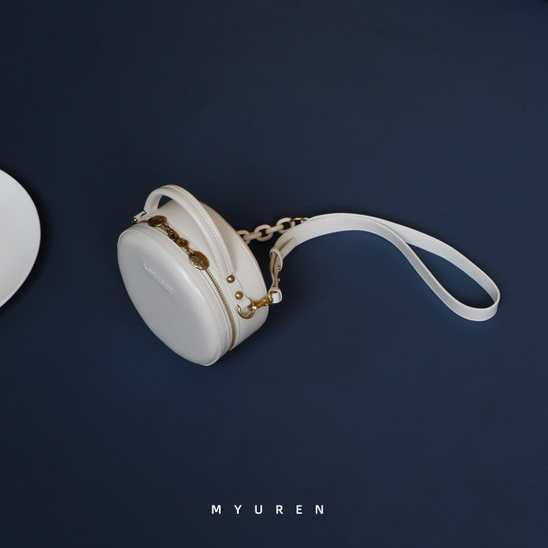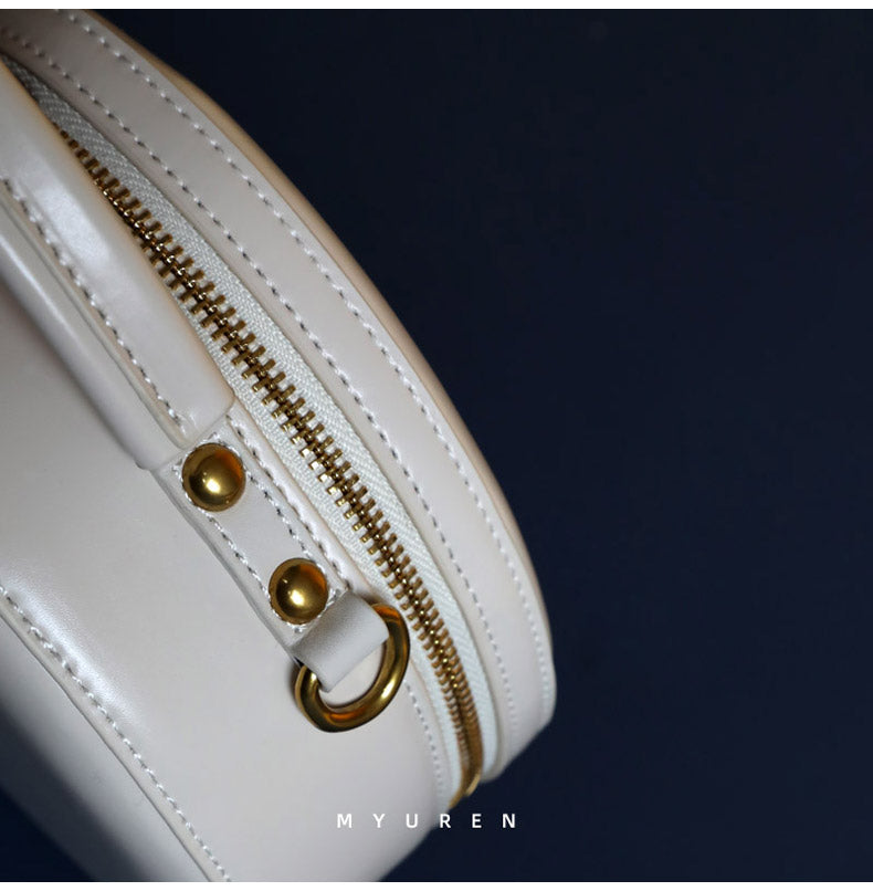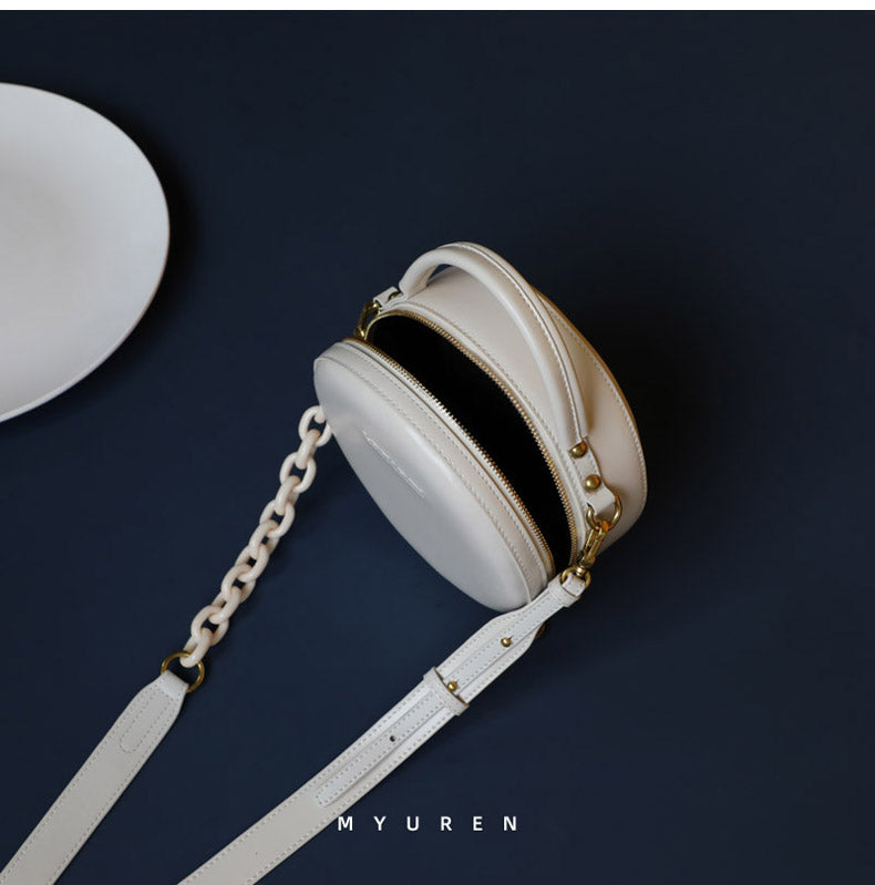 Design: Womens White Leather Round Handbag Small Chain Crossbody Purse Round Shoulder Bag for Women