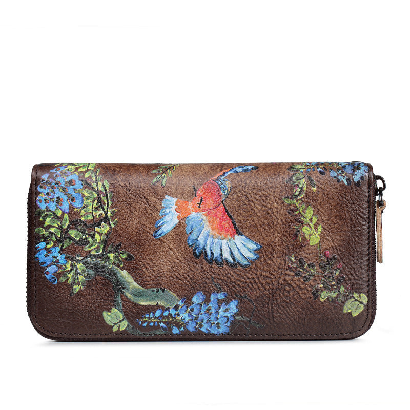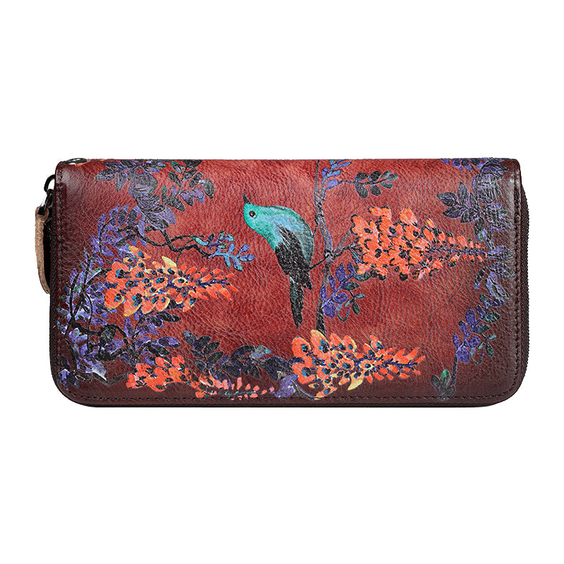 Design: Womens Wisteria Flower Red Leather Zip Around Wallet Wristlet Wallet Flower Ladies Zipper Clutch Wallet for Women
