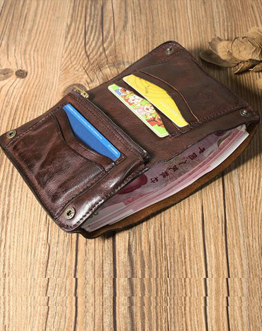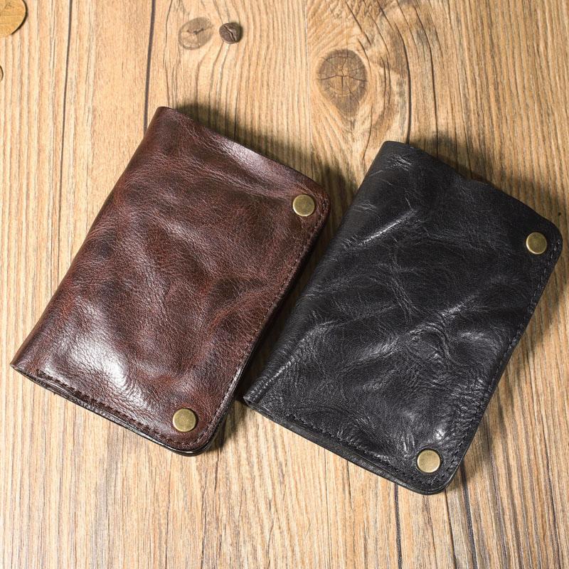 Design: Wrinkled Leather Mens Dark Brown billfold Wallet Cool Leather Card Wallet Small Wallets for Men
