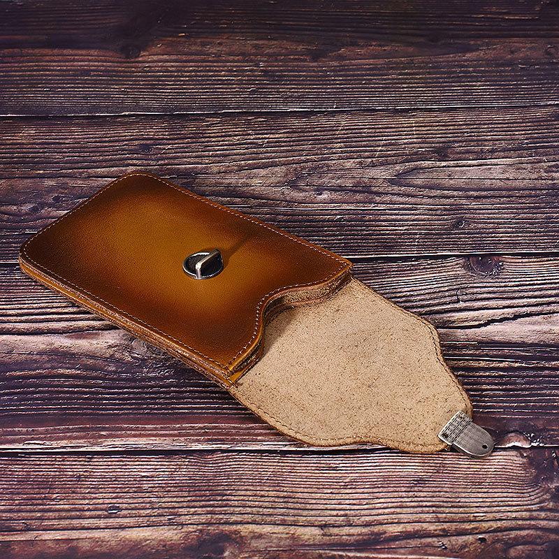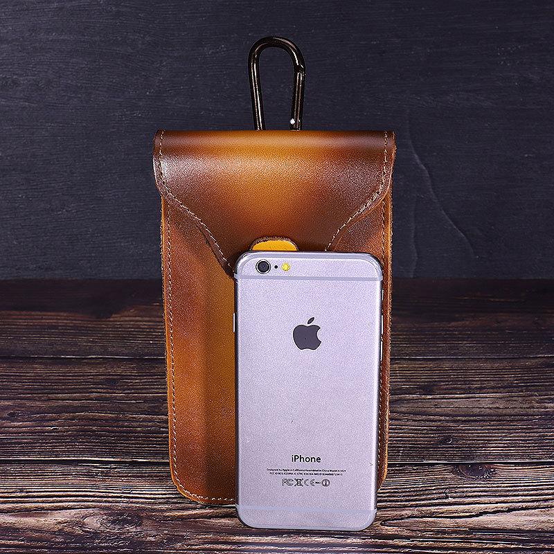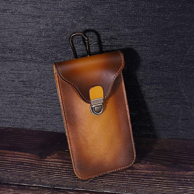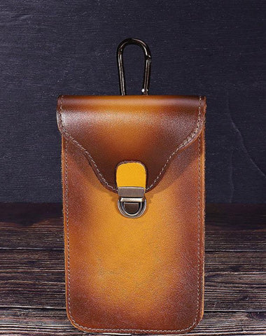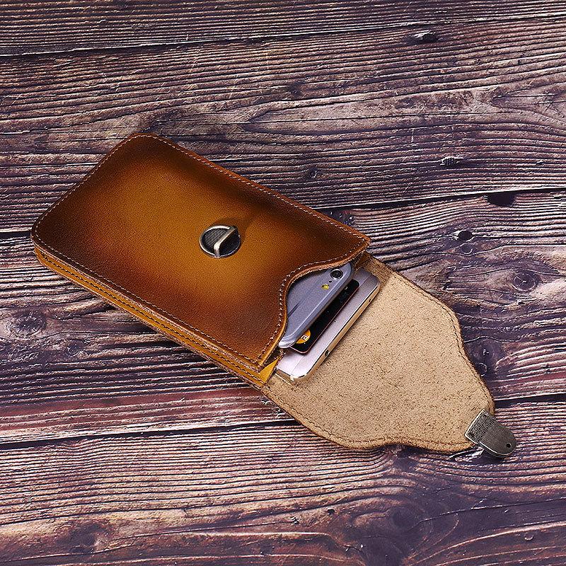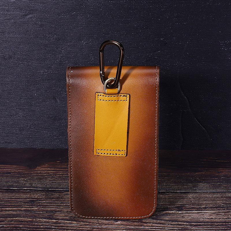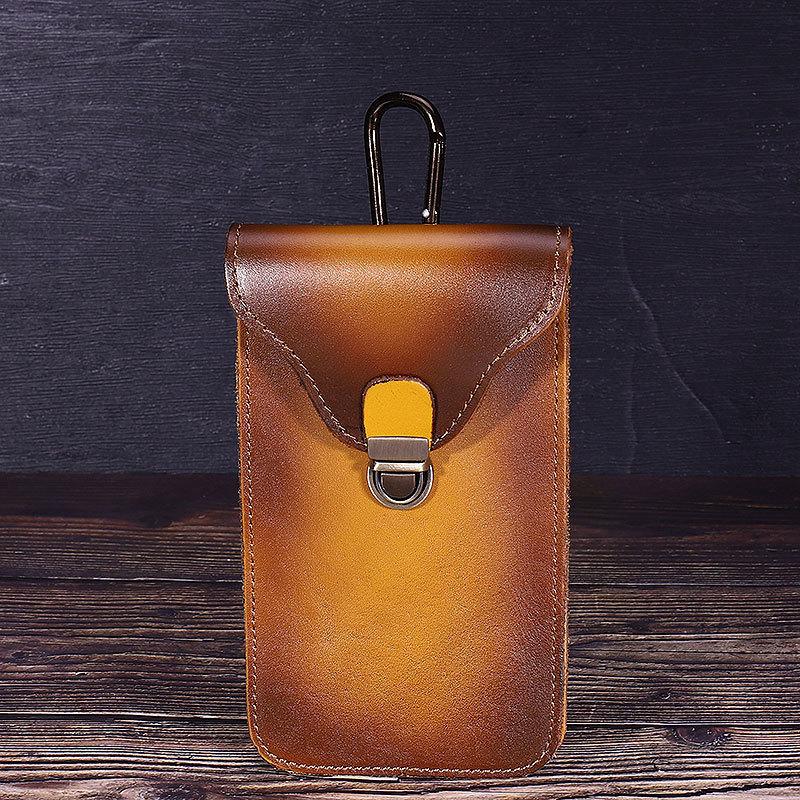 Design: Yellow Brown Leather Cell Phone Mens Belt Pouches Waist Bags BELT BAG Mini Bag For MenOverview: