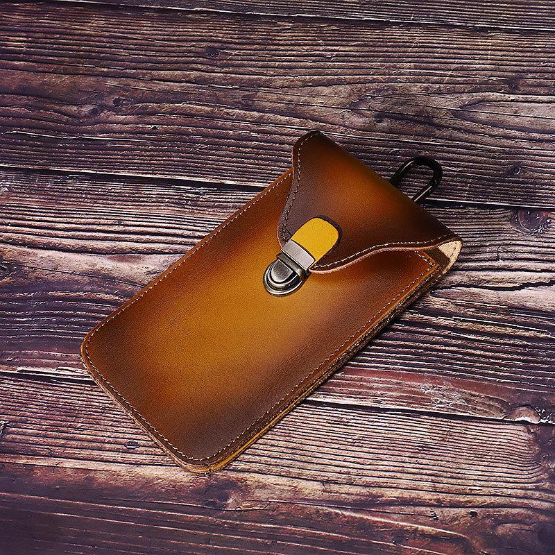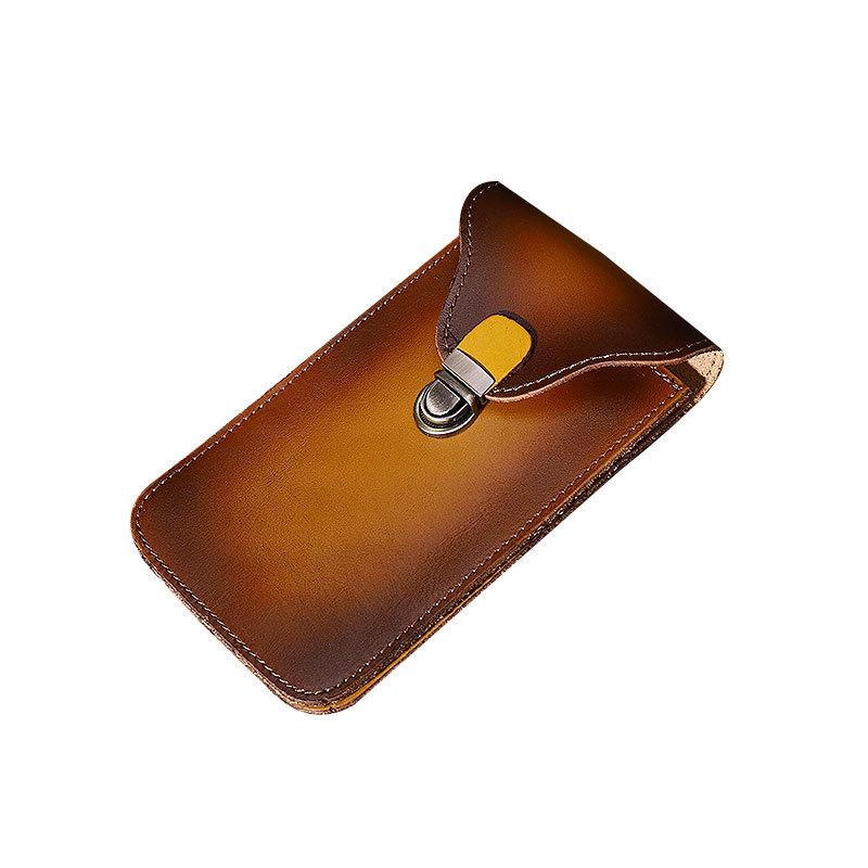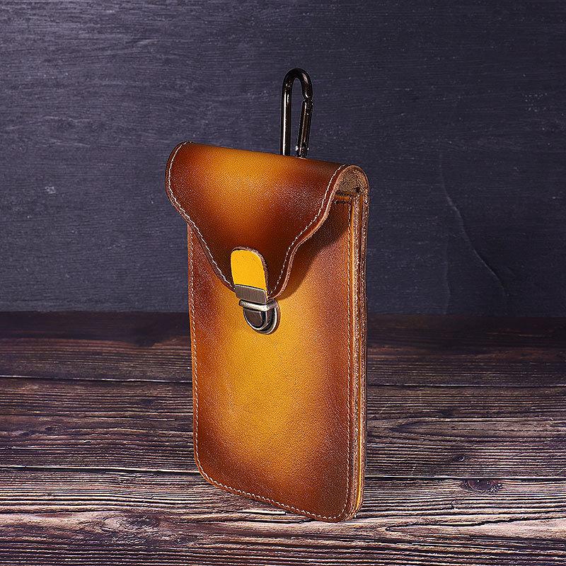 Design: Yellow Brown Leather Cell Phone Mens Belt Pouches Waist Bags BELT BAG Mini Bag For Men