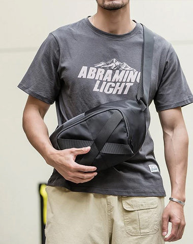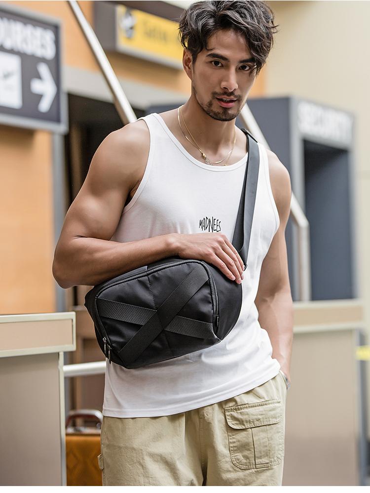 Cool Black Nylon Mens 10 inches Chest Bag Messenger Bags One Shoulder Backpack Black Side Bag for Men