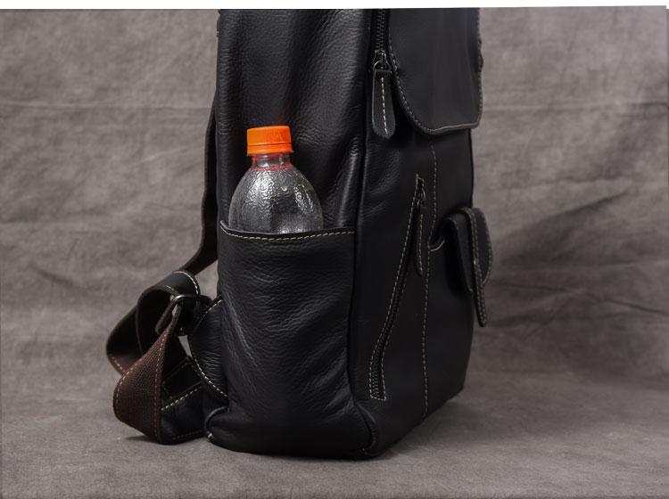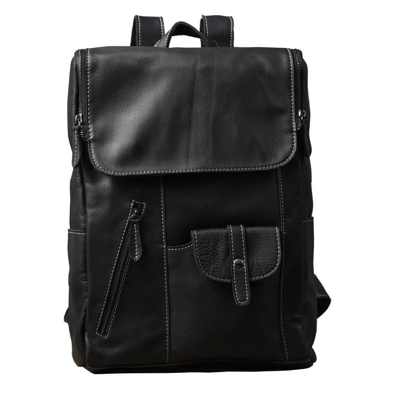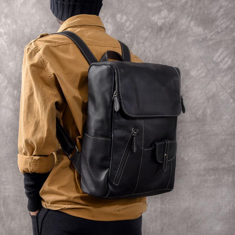 Design: Black Leather Mens 14" Laptop Backpack Multi-pocket Backpack Travel Backpack College Backpack for Men
