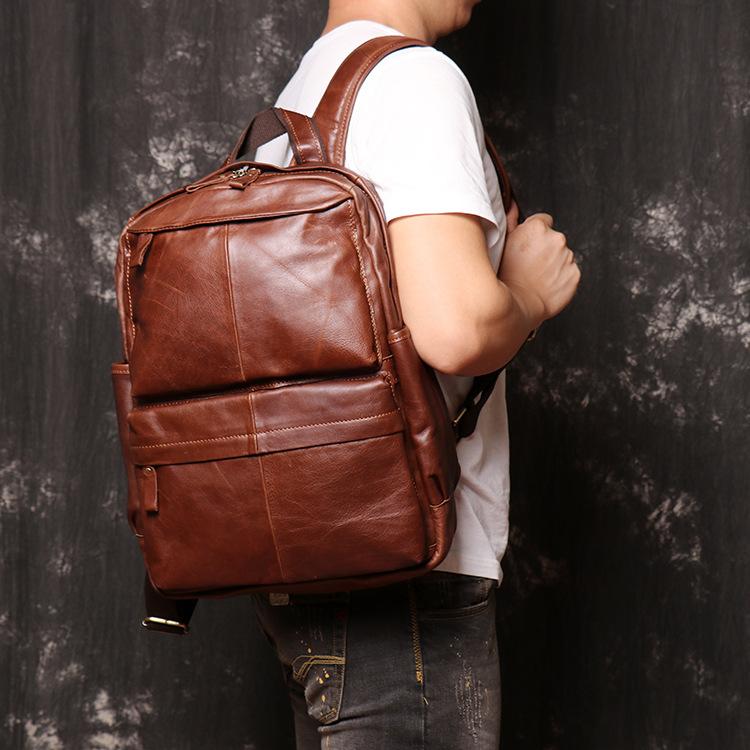 Style: Brown Leather Men's 15 inches Computer Backpack Travel Backpack Laptop College Backpack For Men
