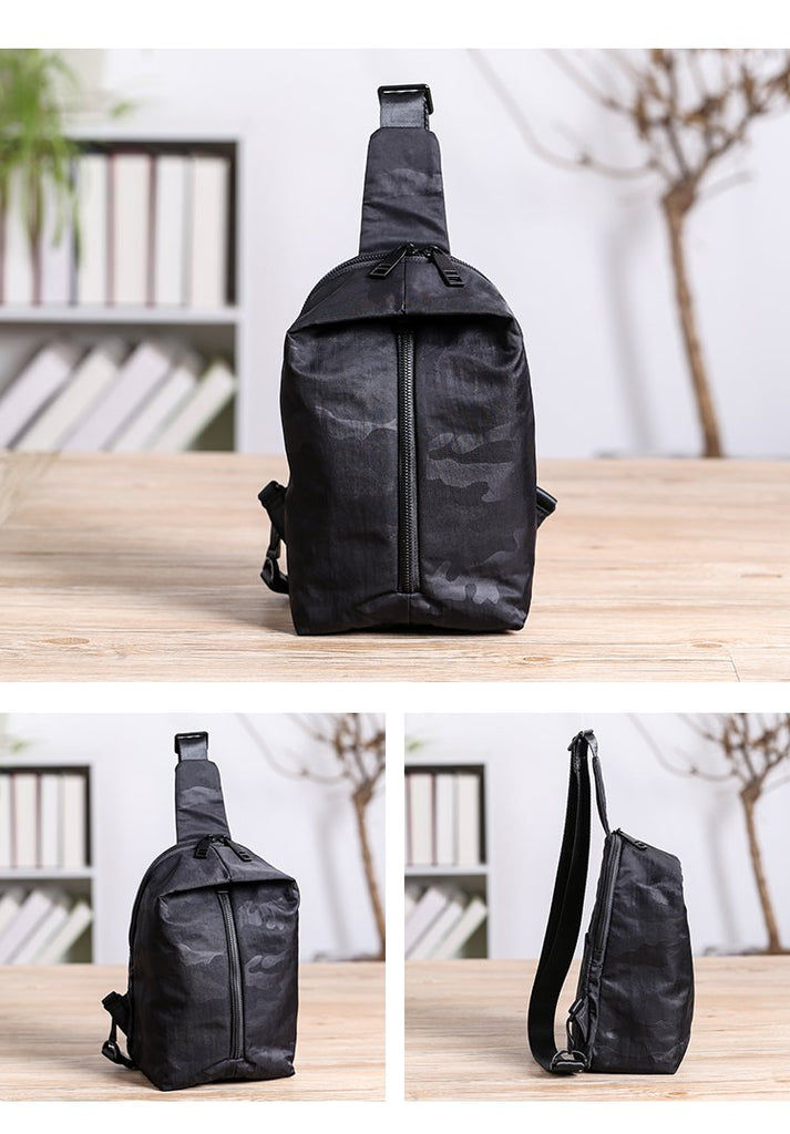 Design: Cool Black Canvas Backpack Camouflage Men's Sling Bag Chest Bag One shoulder Backpack Sports Bag For Men