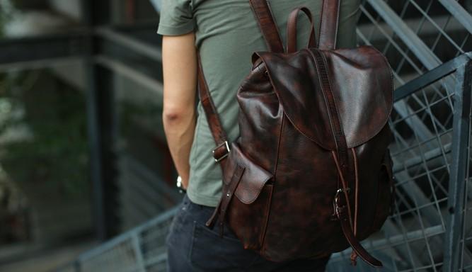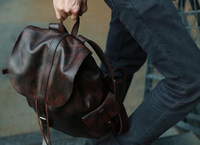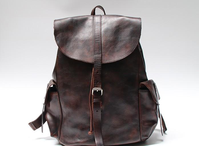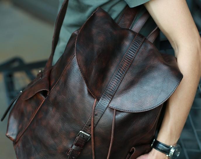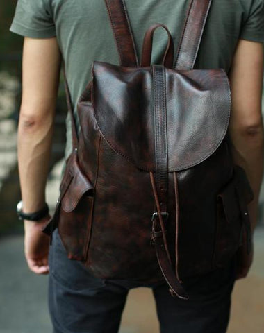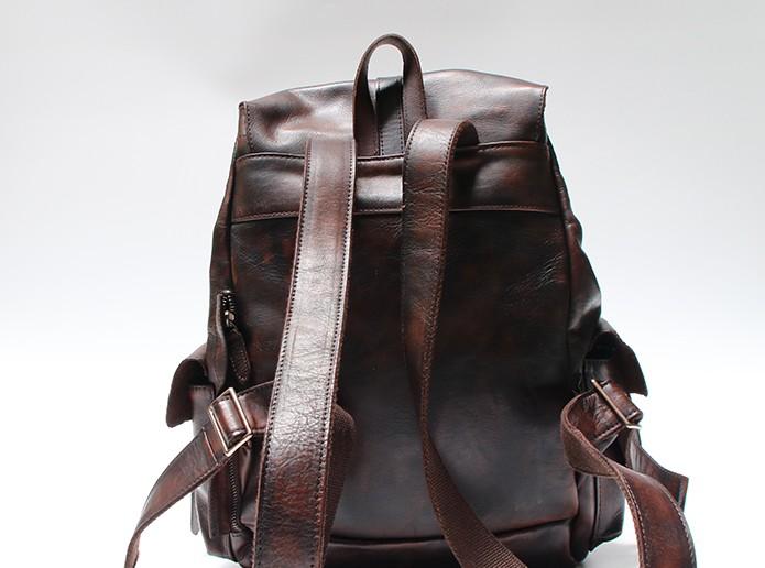 Style: Cool Black Coffee Mens Leather Backpack Travel Backpack School Backpacks for men
