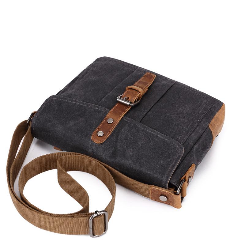 Design: Cool Canvas Leather Mens Casual Motorcycle Shoulder Bag Messenger Bag Backpack For Men