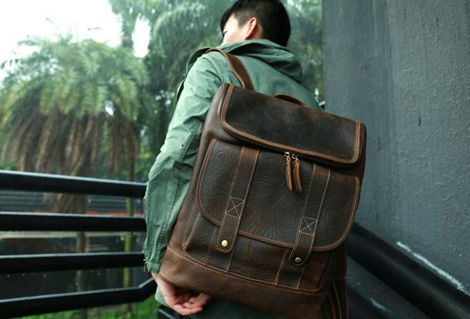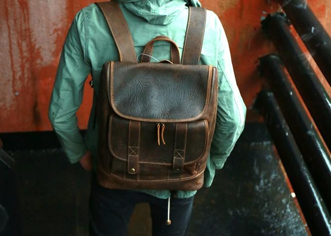 Design: Cool Brown Mens Leather Backpack Travel Backpacks Laptop Backpack for men