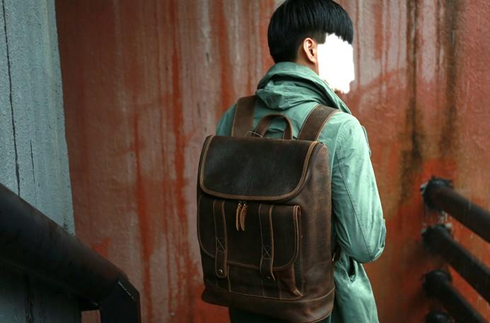 Style: Cool Brown Mens Leather Backpack Travel Backpacks Laptop Backpack for men