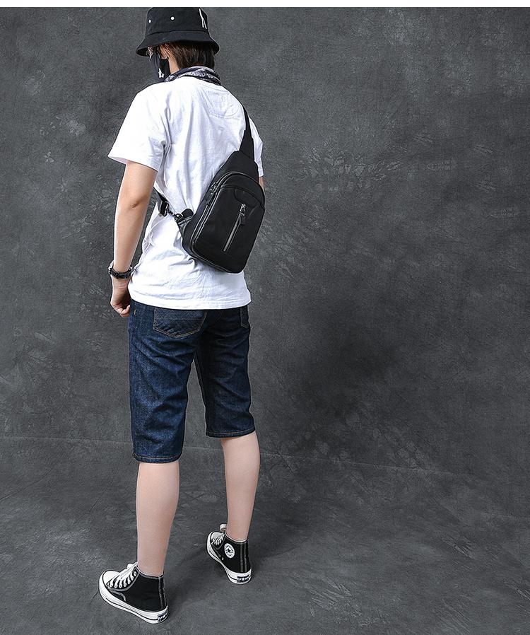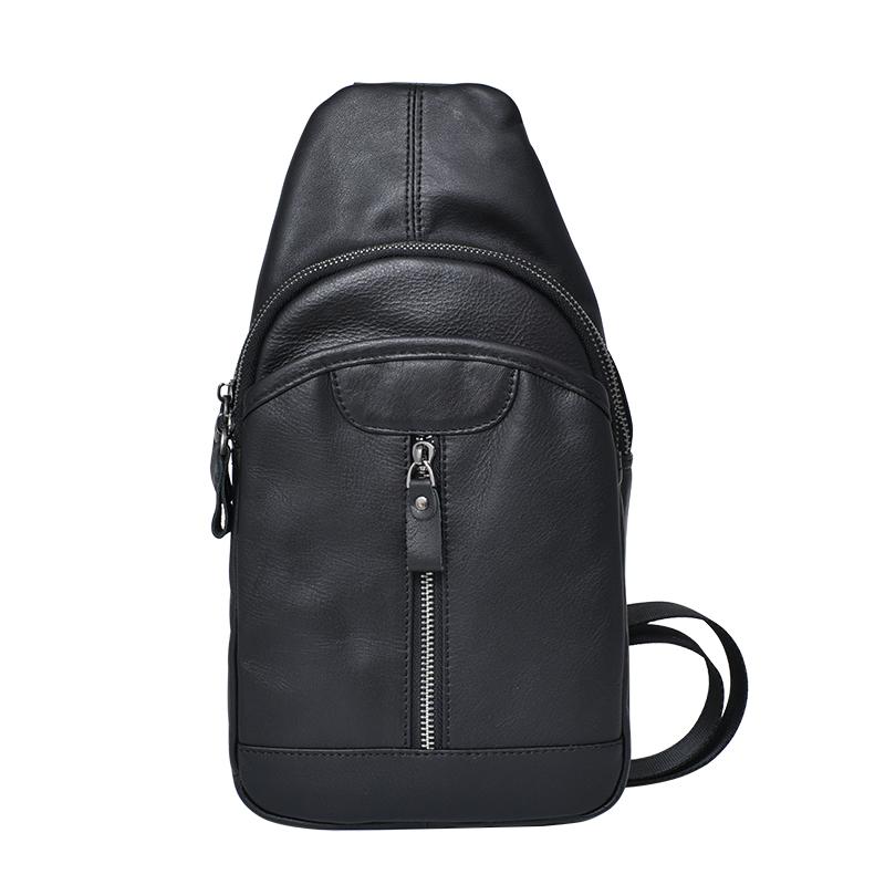 Design: Cool Leather Mens 8" Black Multi-Function Backpack Sling Bag Chest Bag One Shoulder Backpack for Men