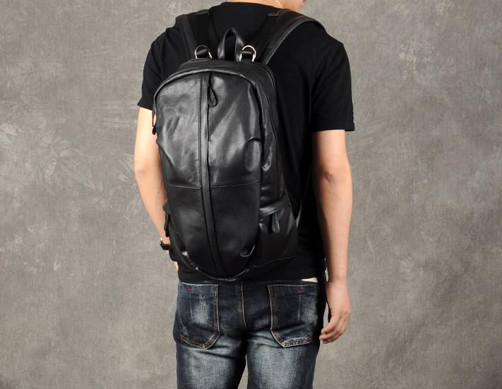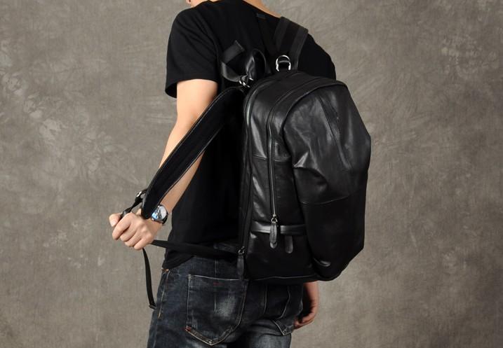 Style: Genuine Leather Mens Cool Backpack Sling Bag Large Black Travel Bag Hiking Bag for men