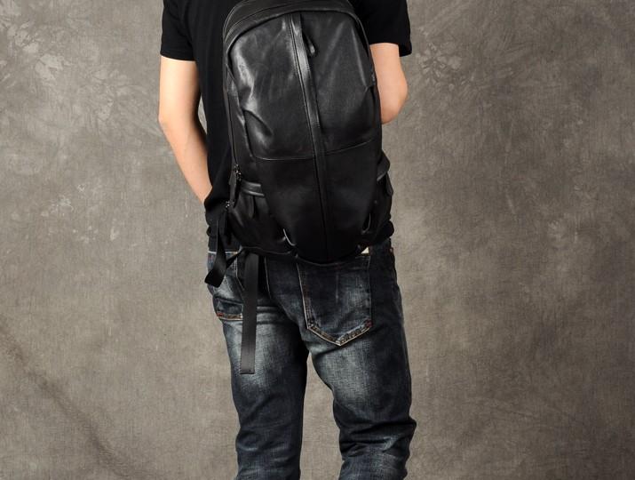 Design: Genuine Leather Mens Cool Backpack Sling Bag Large Black Travel Bag Hiking Bag for men