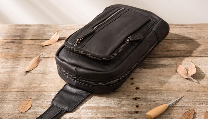 Style: Black Leather Mens Sling Bag Sling Shoulder Bag Sling Backpack for men