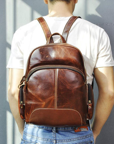 Design: Simple BROWN LEATHER MEN'S College Backpack Travel Backpack Leather Backpack For Men