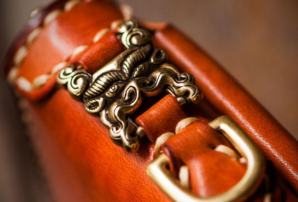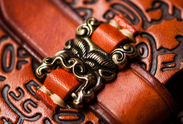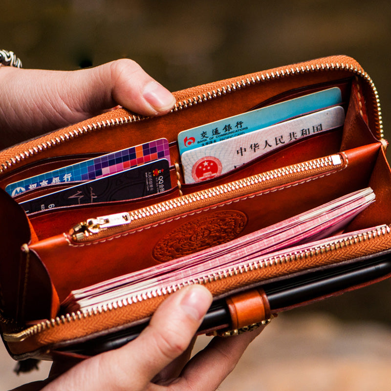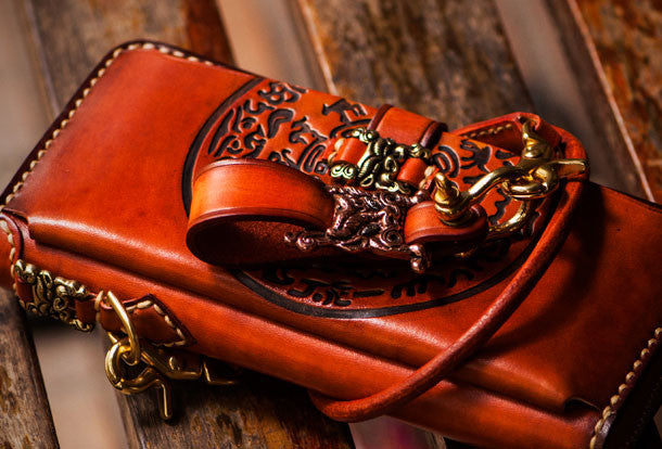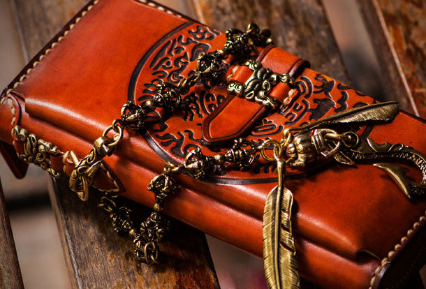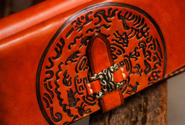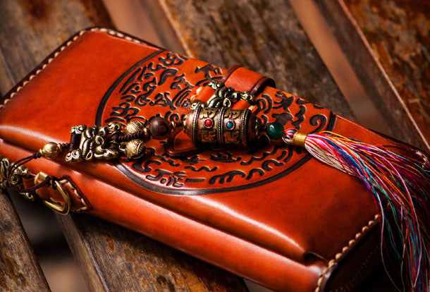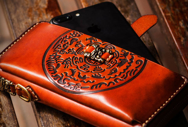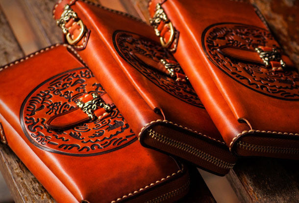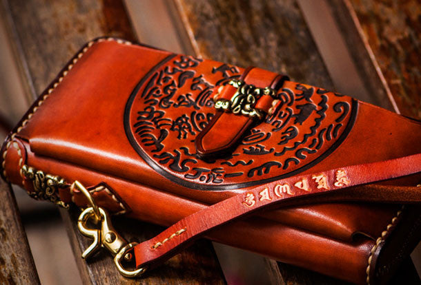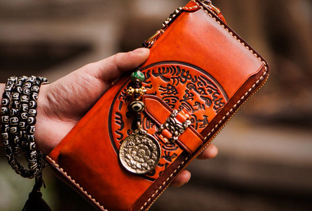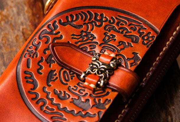 Design: Black Carved Tooled Tibet biker Clutch zip Leather Wallet