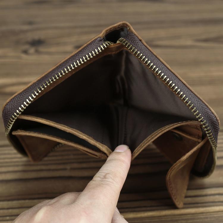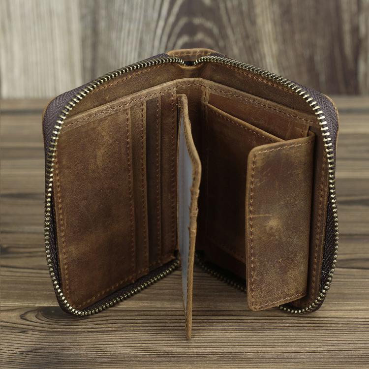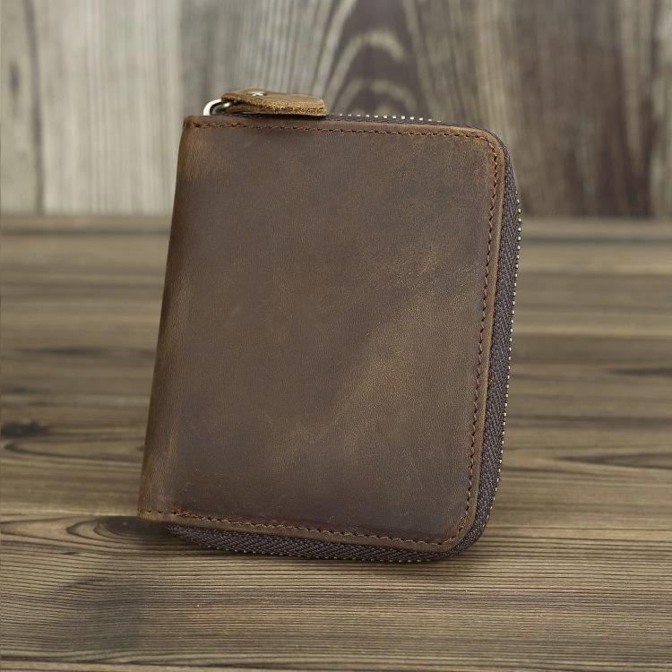 Design: Brown Leather Men Billfold Wallet Leather Black Vertical Bifold Wallet with Coin Pockets For Men