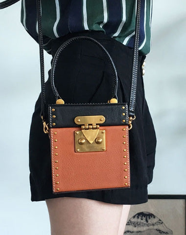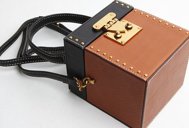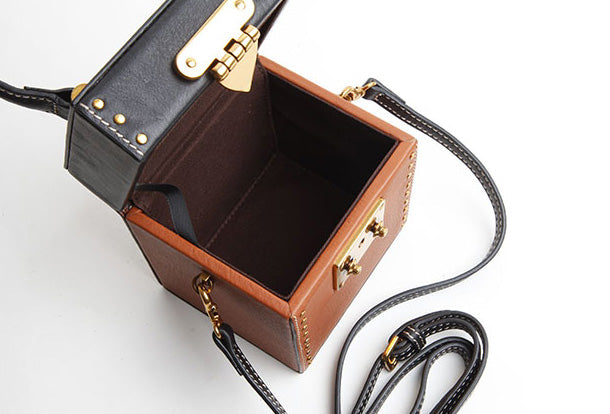 Style: Genuine Leather Cute Cube Handbag Crossbody Bag Shoulder Bag Women Leather Purse