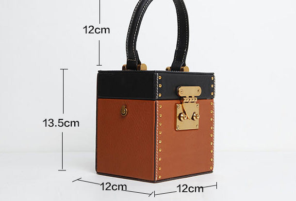 Design: Genuine Leather Cute Cube Handbag Crossbody Bag Shoulder Bag Women Leather Purse