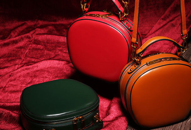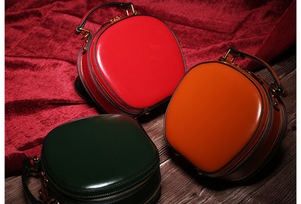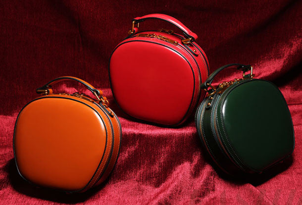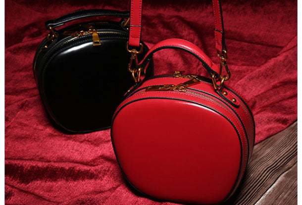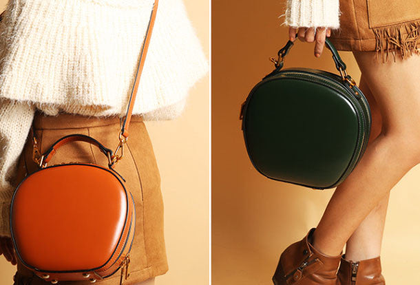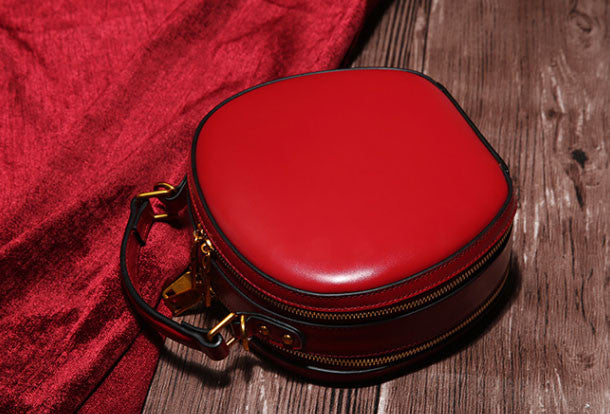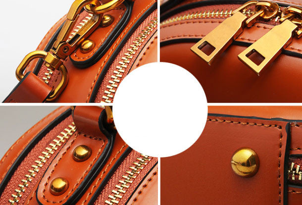 Design: Vintage Leather Women Shoulder Bag round Handbag tassels
