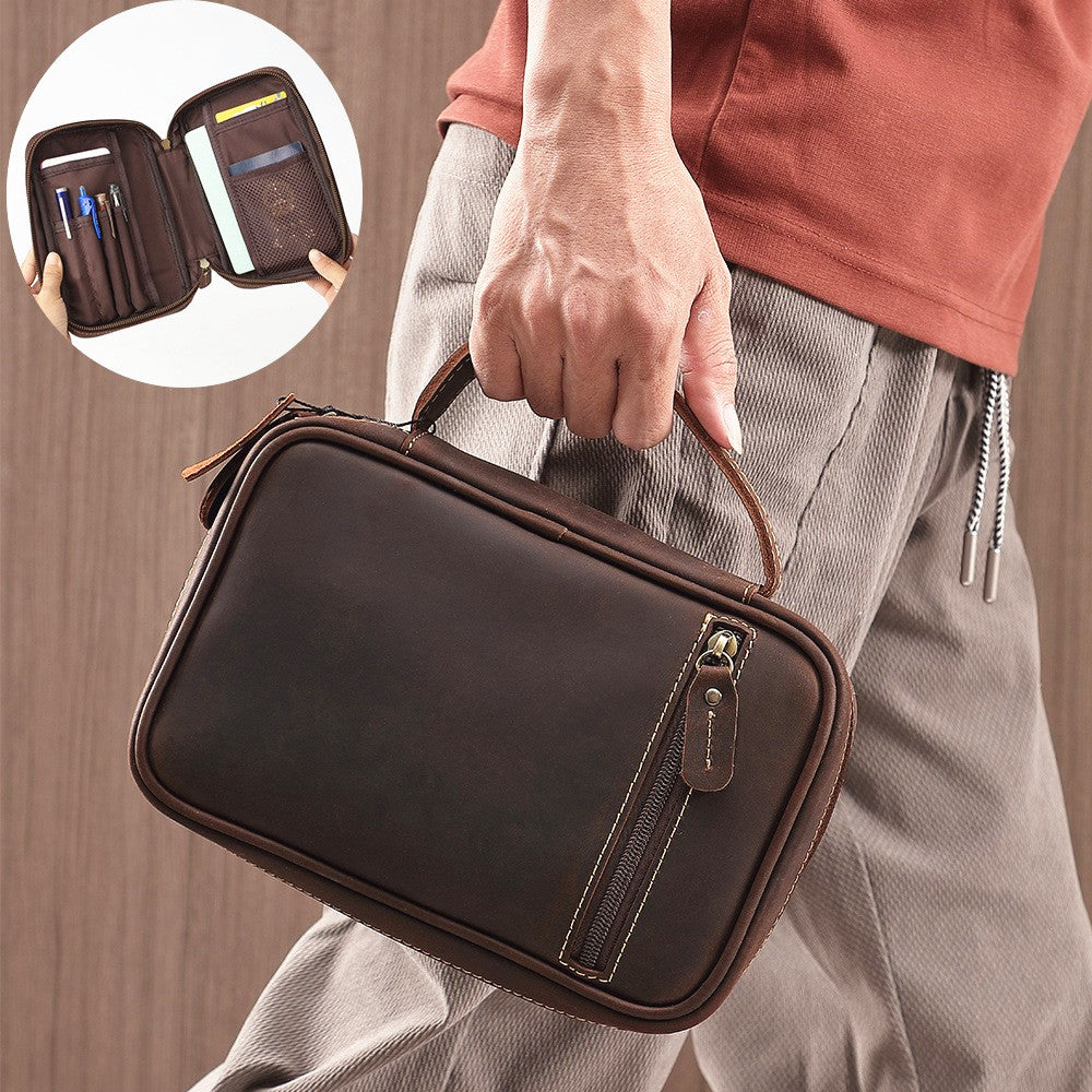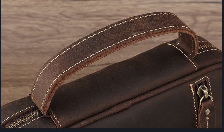 Meet the perfect companion for the modern professional - our exquisitely crafted leather mini briefcase. Designed for sophisticated minimalism, this compact case measures 24.5cm x 16cm x 6cm and weighs just 0.4kg, offering exceptional organization in a portable format. Made from genuine full-grain crazy horse leather, this leather mini briefcase combines timeless elegance with practical functionality.