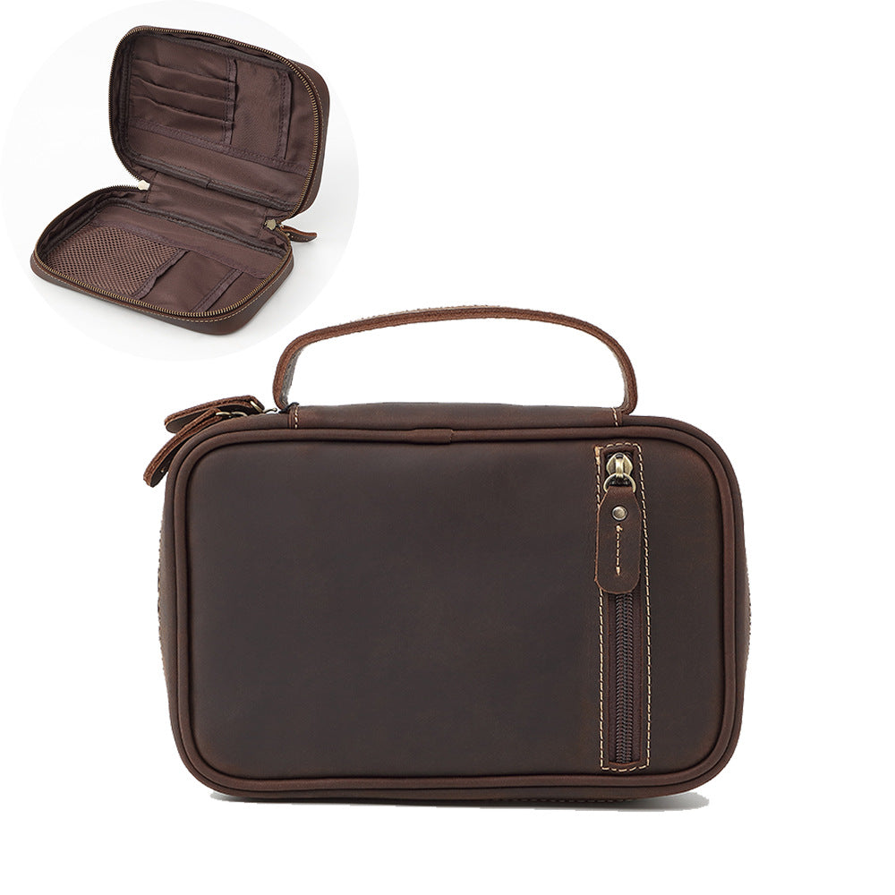 Compact Leather Mini Briefcase - Premium Crazy Horse Leather