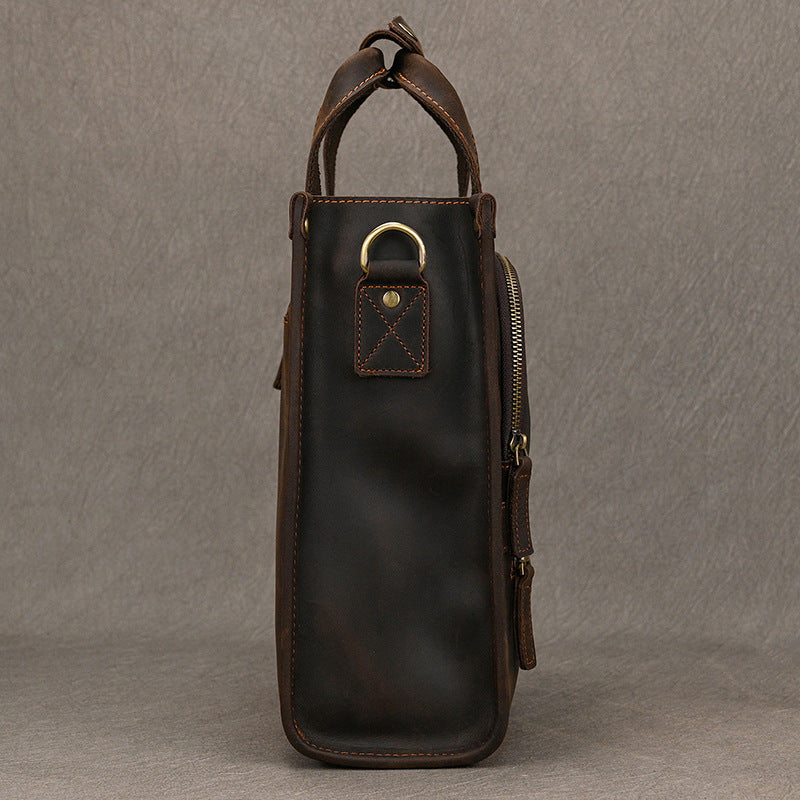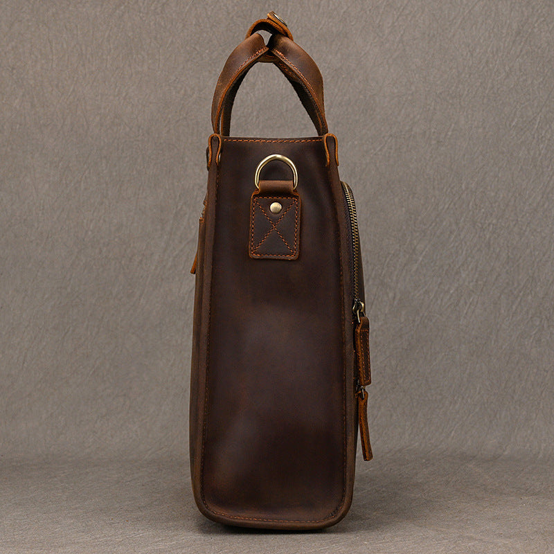 Vertical Briefcase | Premium Crazy Horse Leather Business Bag for Men