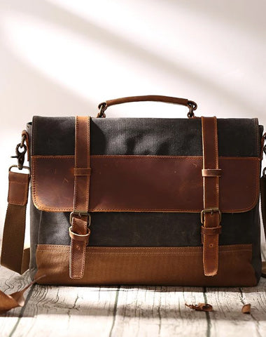 Style: Canvas Mens Shoulder Bag Gray Green Briefcase Postman Bag Messenger Bag for Men