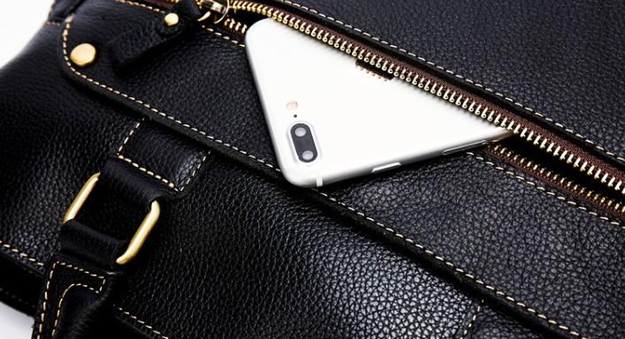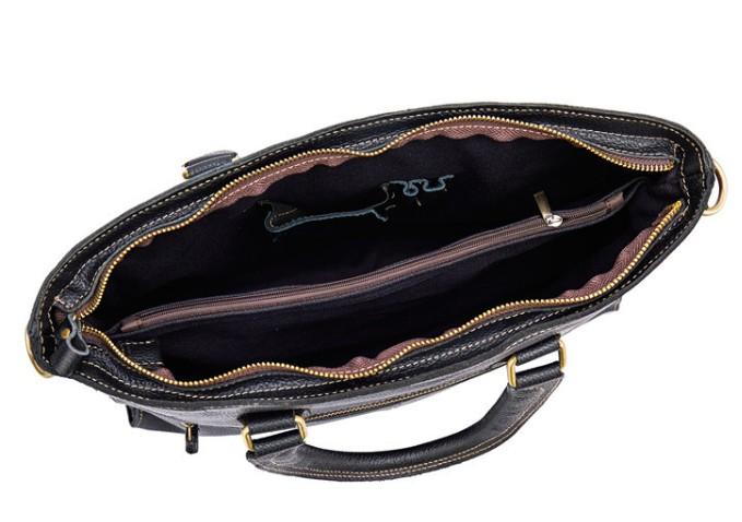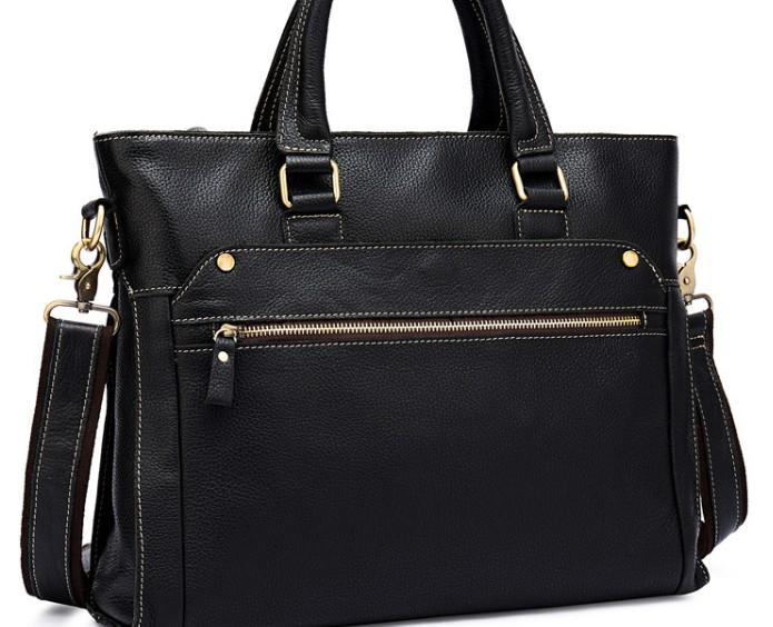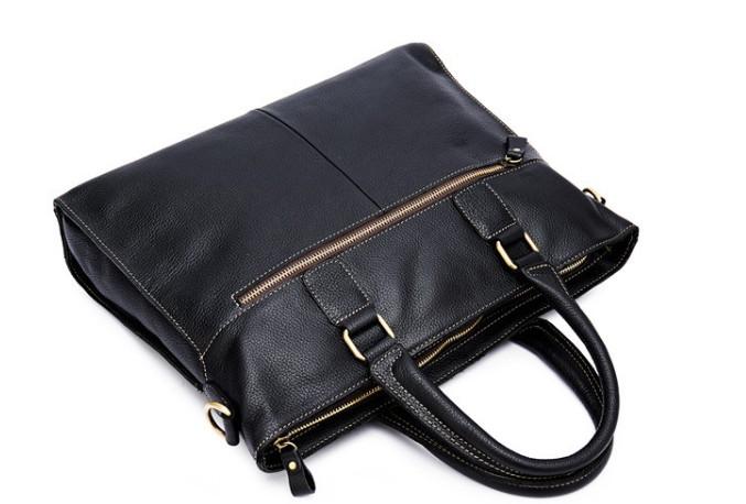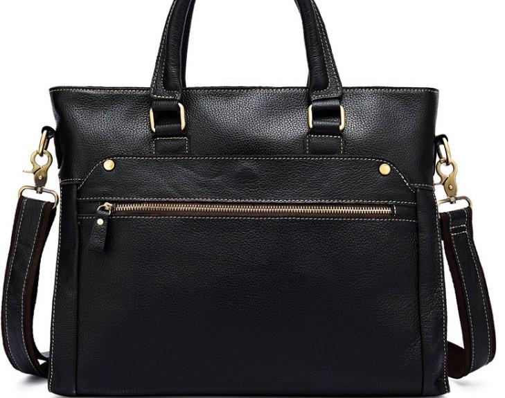 Design: Cool Black Leather Mens Briefcase 13inch Work Bag Business Bag For Men