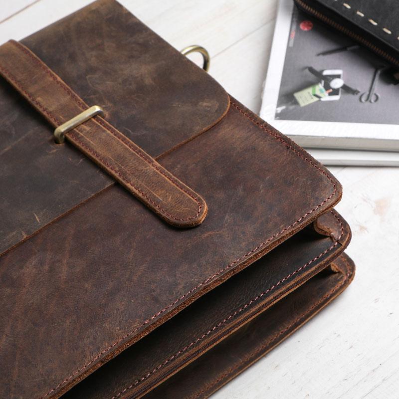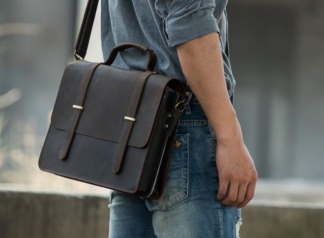 Design: Cool Coffee Leather Mens Briefcase Work Shoulder Bag Laptop Bag Business Bag for Men