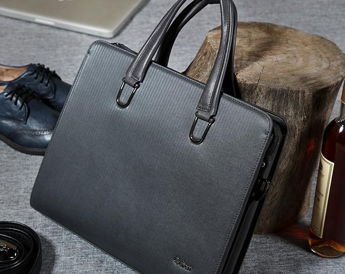 Black Leather Mens Cool Briefcases Work Bag Business Bag Laptop Bag for men