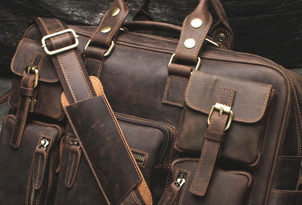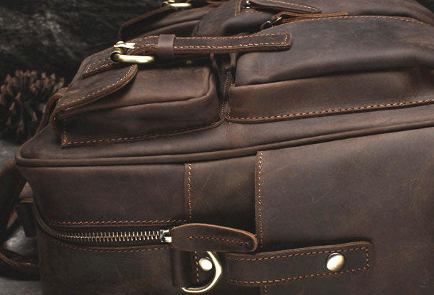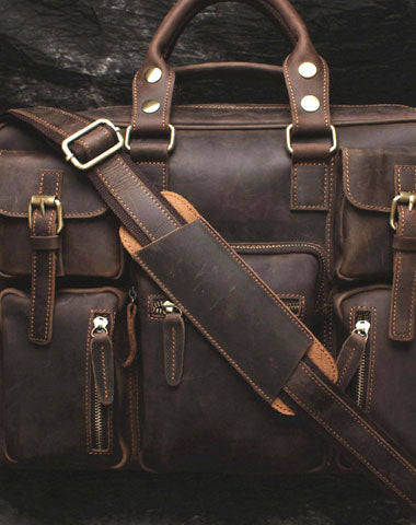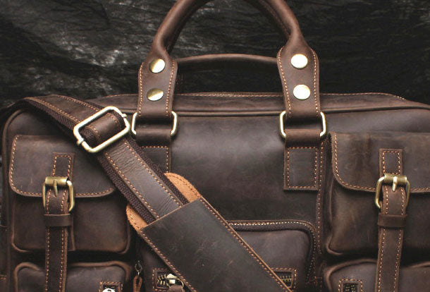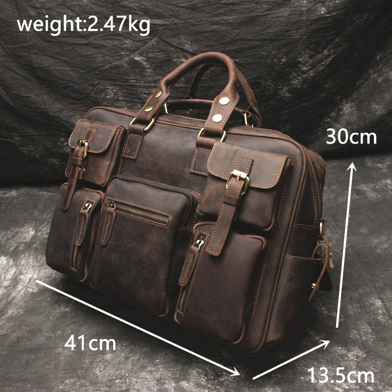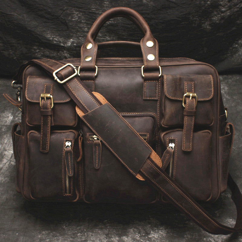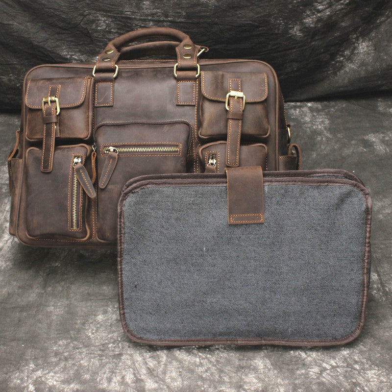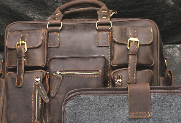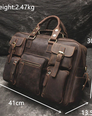 Vintage Leather Mens Large Briefcase Travel Bag Large Business Bag for men