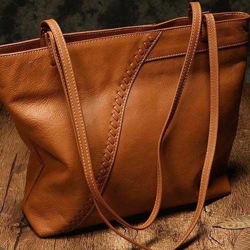 Design: Brown Woven 15" Leather Tote Shopper Shoulder Bag Purse In Stock: 3-5 Days To Process Order Include: A Bag Custom: None Material: Cowhide Measures: 15 inches ( 30~40cm× 10cm× 30cm) Color: Brown Weight: 0.68kg Slots: 1 zip main slot, 1 inner slot, 1 zip inner slot Style: Leather Tote Bag Note:<