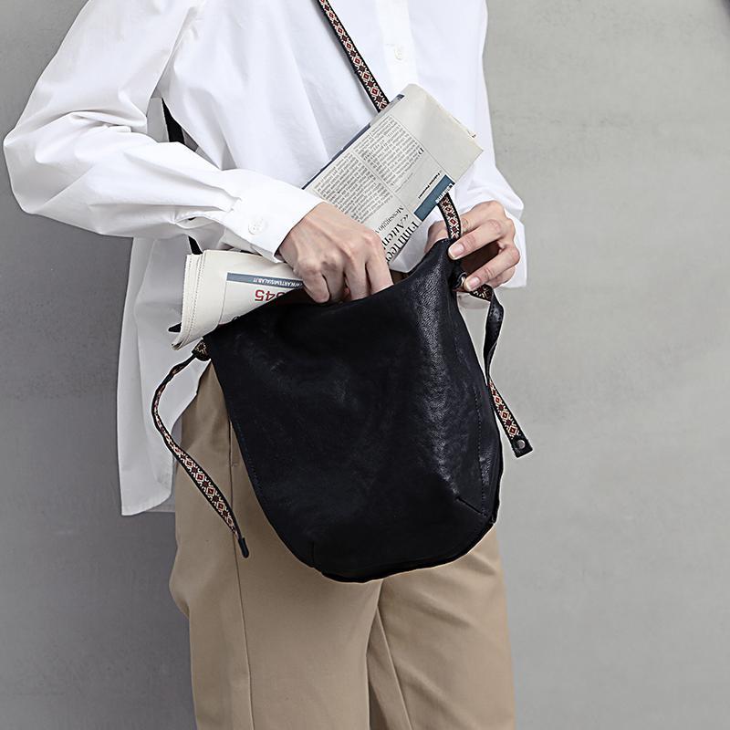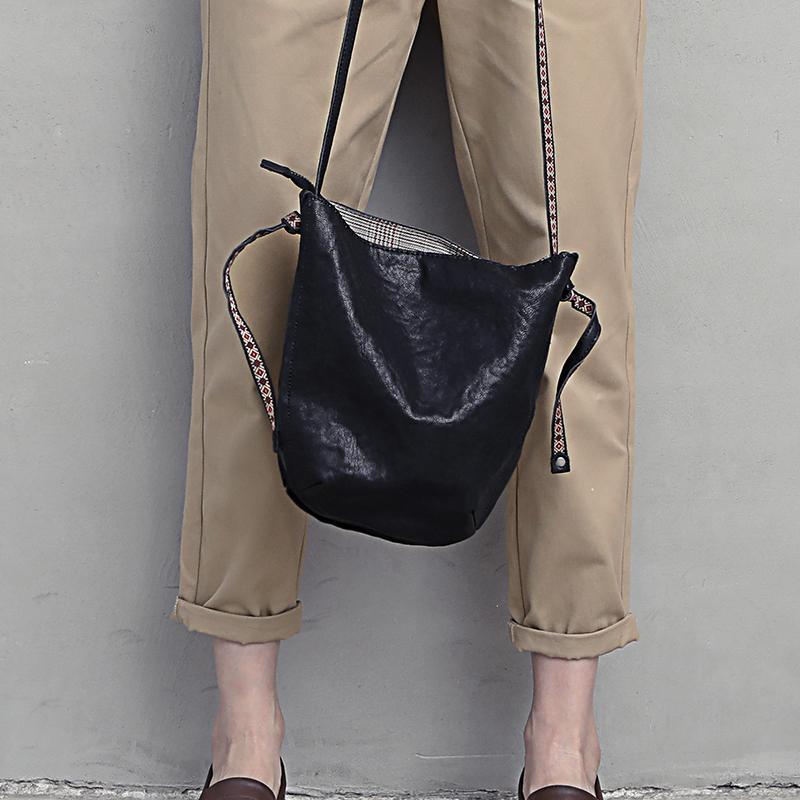Design: Genuine Leather Bucket Bag Shoulder Crossbody Bag Purse In Stock: 3-5 Days To Process Order Include: A Bag and A Pouch Custom: None Material: Sheep Skin Measures: 9.5 inch ( 24cm× 5cm× 24cm) Color: Black, Brown Weight: 0.68kg Slots: 1 zip main slot, 1 inner slot, 1 zip inner slot Style: Leather B