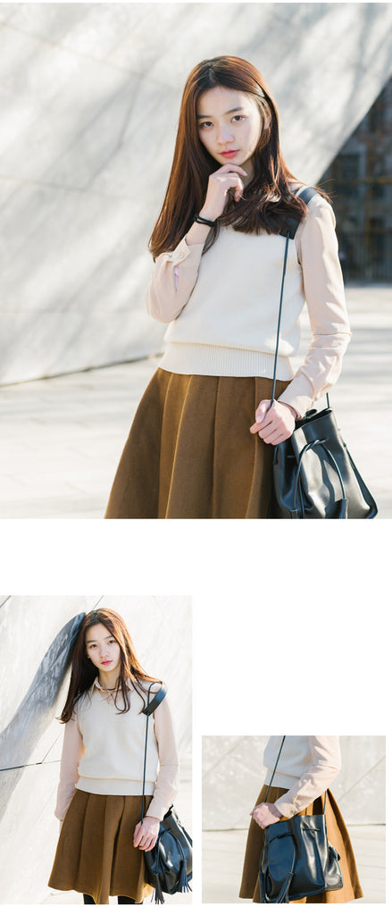 Design: Cute LEATHER Black Bucket Bag WOMENs SHOULDER BAG Purses FOR WOMEN