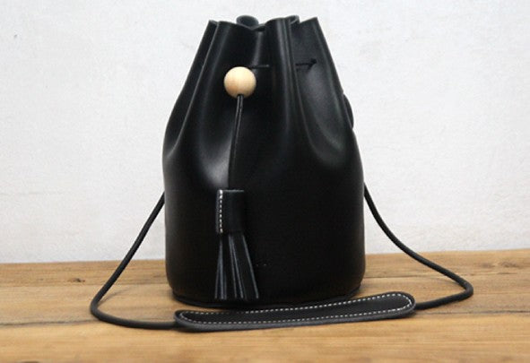 Design: Cute LEATHER WOMEN Bucket SHOULDER BAG Barrel Crossbody Purses FOR WOMEN
