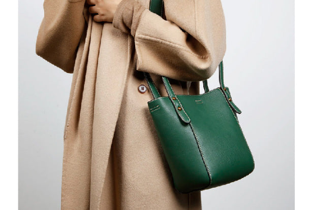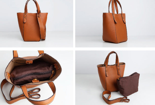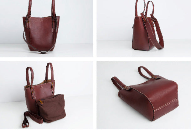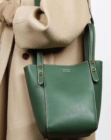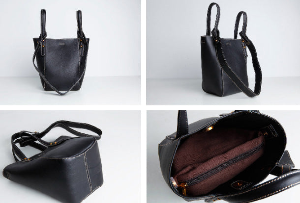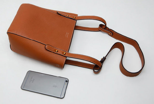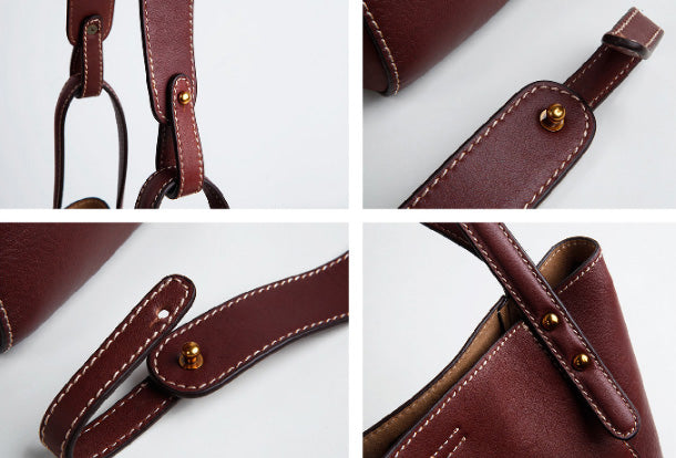 Design: Genuine Leather Cute Bucket Bag Handbag Crossbody Bag Shoulder Bag Women Leather Purse