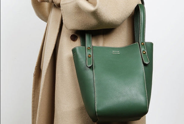Style: Genuine Leather Cute Bucket Bag Handbag Crossbody Bag Shoulder Bag Women Leather Purse