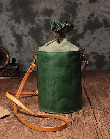 Design: Genuine Leather Small Bucket Bags Shoulder Crossbody Bags Purses In Stock: 3-5 Days To Process Order Include: A Shoulder Bag Custom: None Material: Italian Cowhide Measures: 7 inch (L17×W13× H18cm) Color: Green, Brown Weight: 0.68kg Slots: 1 zip main slot, 1 inner slot Style: Genuine Leather Small Bucket Bags Purses Note: