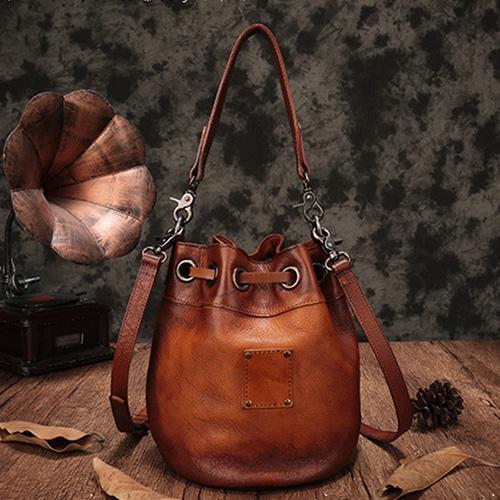 Design: Leather Bucket Vintage Purses Vintage Handbags Shoulder Crossbody Bags In Stock: 2-5 Days To Process Orders Include: Only Handbag Custom: None Material: Italian Cowhide Measures: L 21cm × W 21cm × H 24cm Weight: 0.78kg Slots: 1 zip main slot, 1 inner slot, 1 zip inner slot Style: Leather Bucket Vin