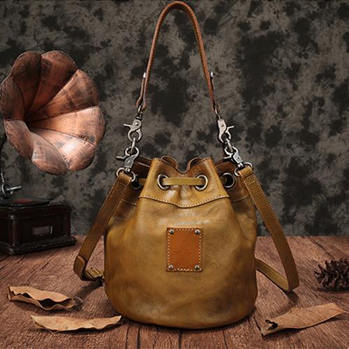 Design: Leather Bucket Vintage Purses Vintage Handbags Shoulder Crossbody Bags In Stock: 2-5 Days To Process Orders Include: Only Handbag Custom: None Material: Italian Cowhide Measures: L 21cm × W 21cm × H 24cm Weight: 0.78kg Slots: 1 zip main slot, 1 inner slot, 1 zip inner slot Style: Leather Bucket Vintage Purses Vintage Handbags Shoulder Crossbody Bags