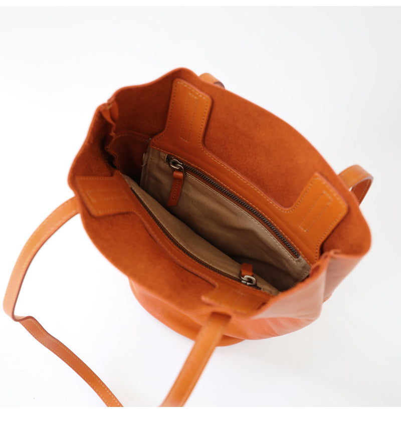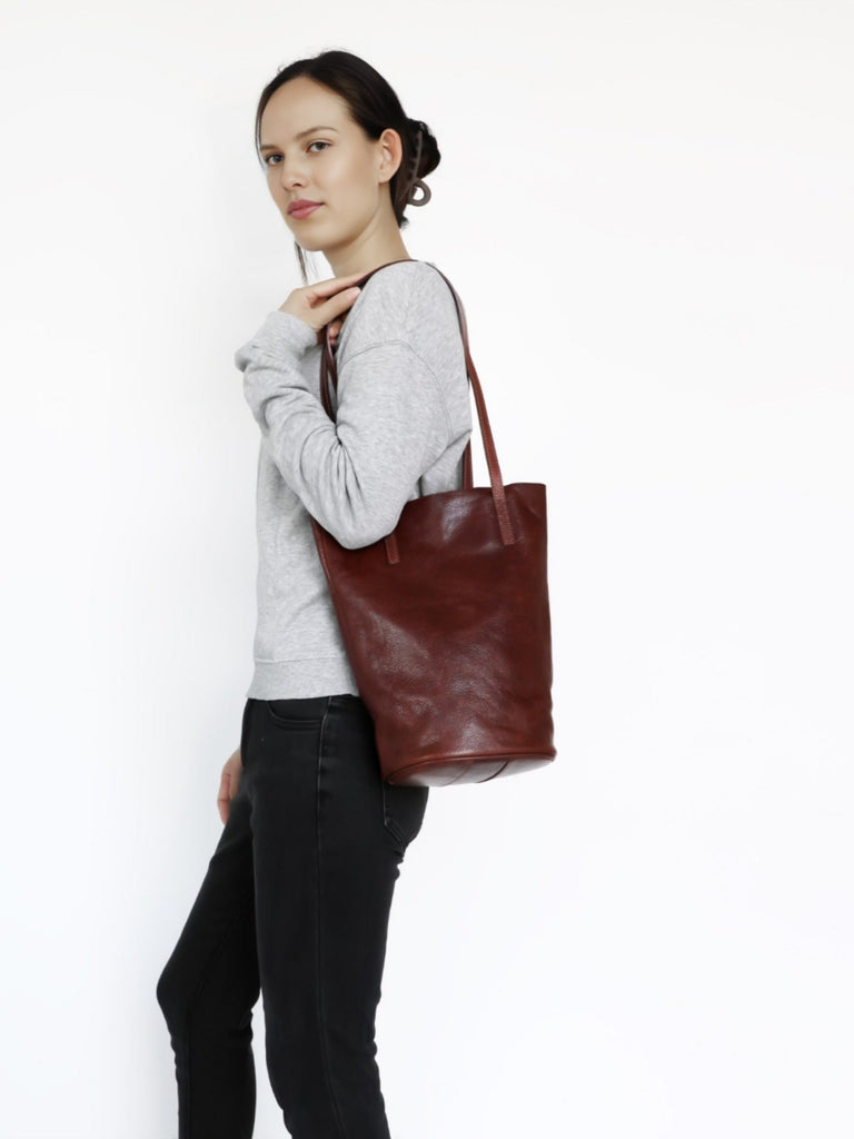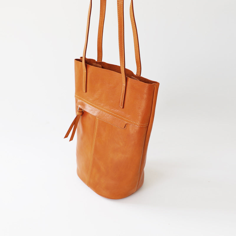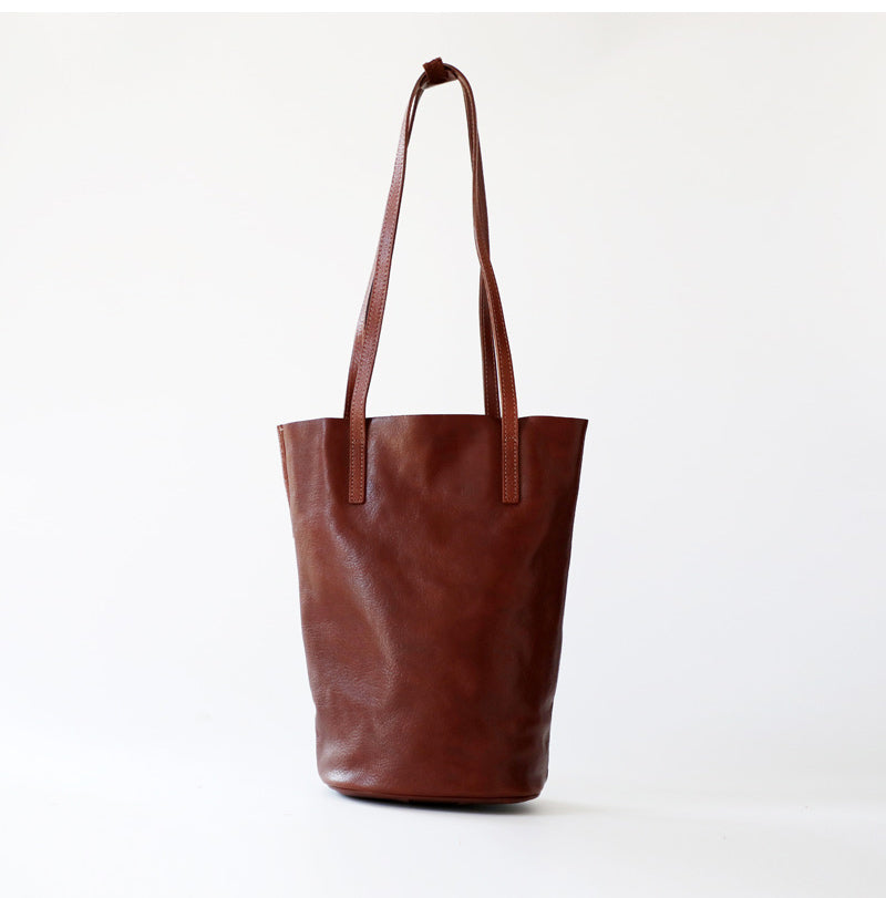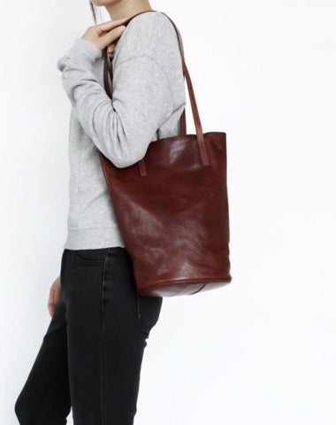 Design: Womens Leather Bucket Tote Purse Vertical Tote Shopper Shoulder Bag for Ladies